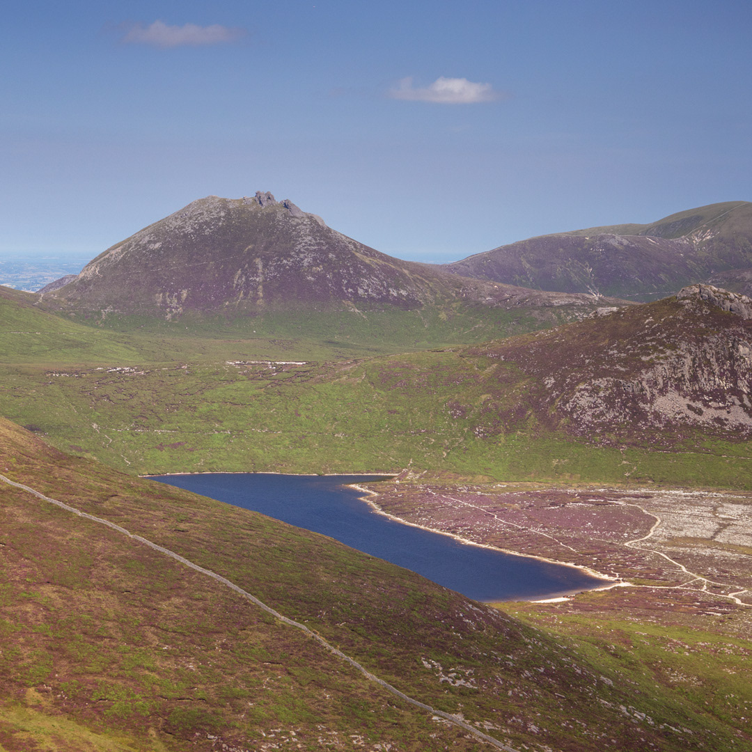 This is my favourite view of the mourne mountains. I love the view and the shape of Lough Shannagh just underneath Slieve Bearnagh. This is the 8th highest peak of the mournes but one of the most awe-inspiring views I've ever seen. (19/07/'21)